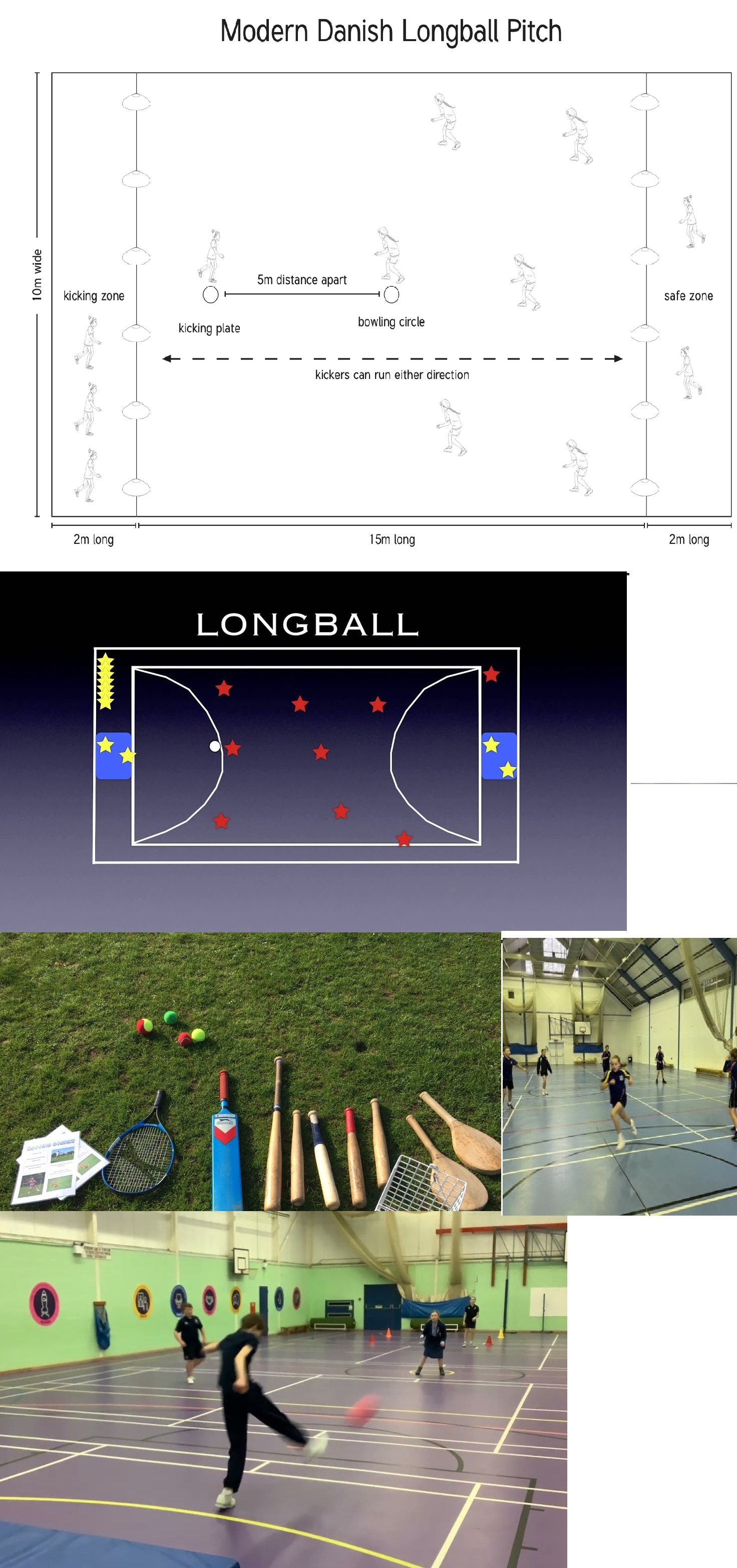 Danish LONGBALL : İlişkili futbolda, uzun bir top, bir kaleciden veya bir savunma oyuncusundan doğrudan hücum oyuncusuna tek bir uzun hava vuruşu sonrasında vurulmadan koşarak hedefe ulaşır... Vuruşlar materyallerle varyasyon kazanabilir.